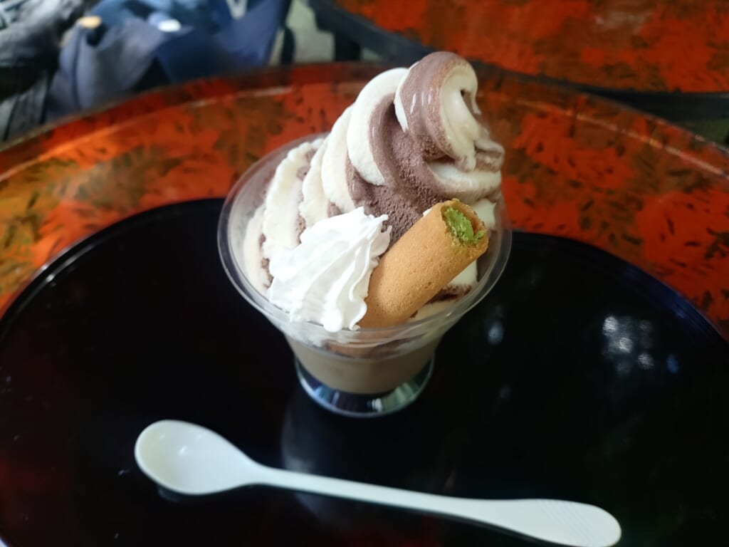 当然、追加でパフェ注文。ほうじ茶プリンのパフェ♪♪