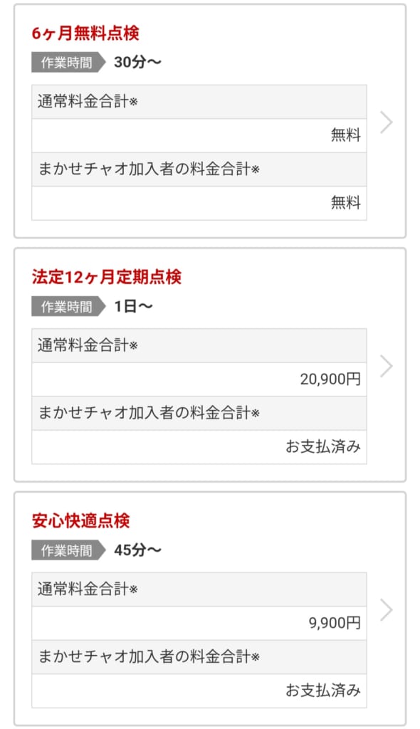 車検・点検・整備カーケアから希望の項目を選択するだけ!