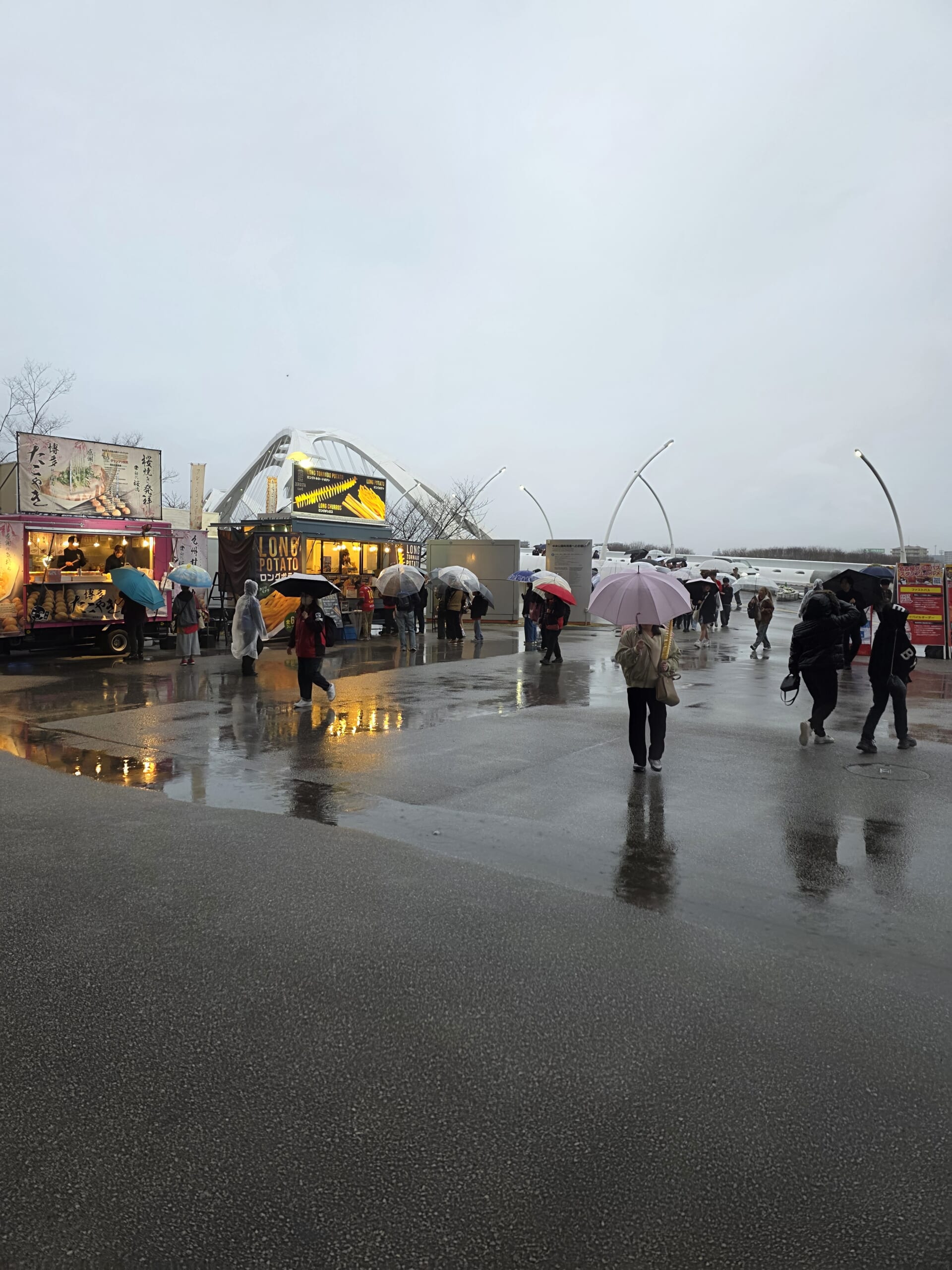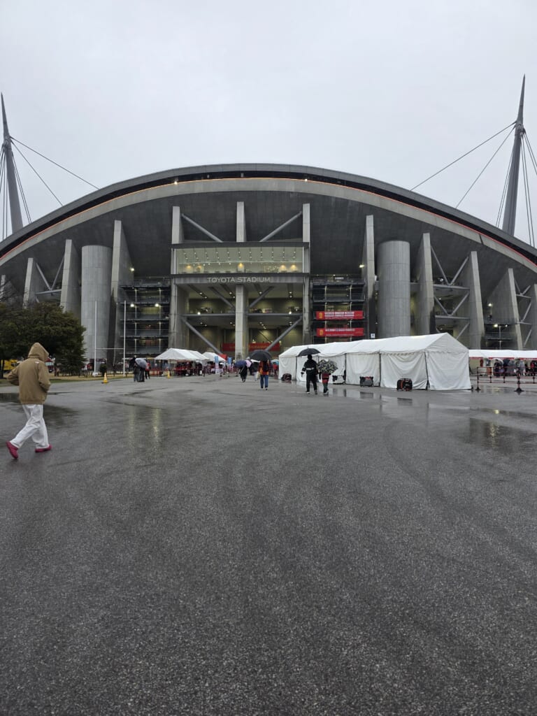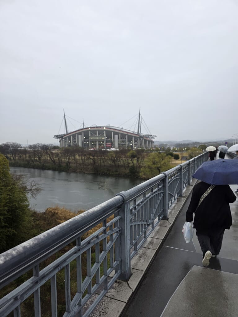 生憎の雨ですが、子供たちは初めての豊スタ。