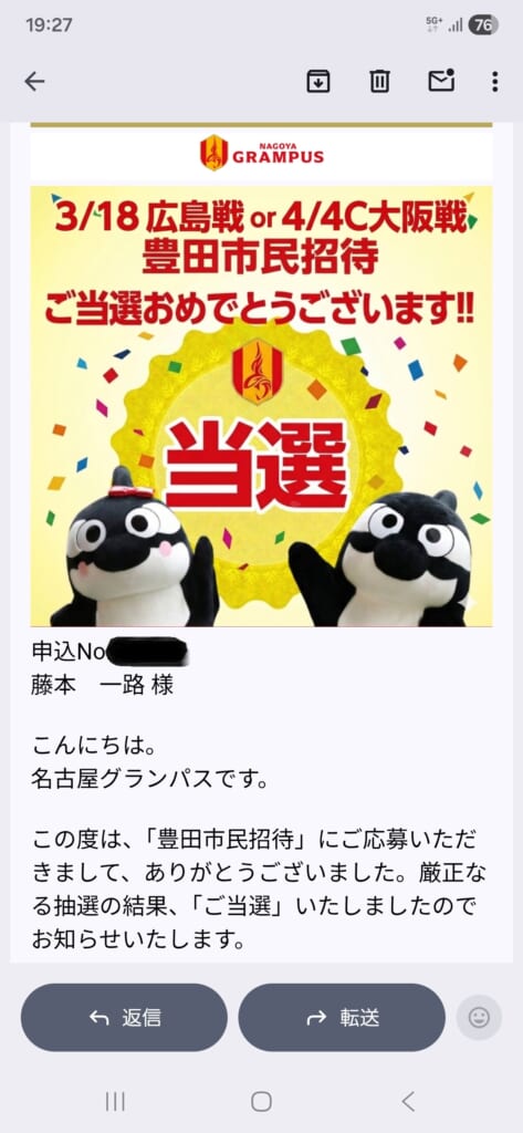 これには娘も大興奮で、グランパスさんありがとうございます卍